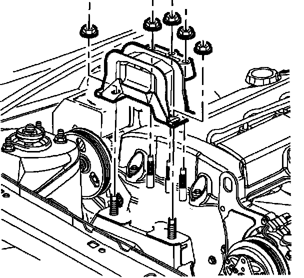 - To prevent engine front cover and mount damage, the three front engine mount-to-front cover nuts must be tightened down uniformly.