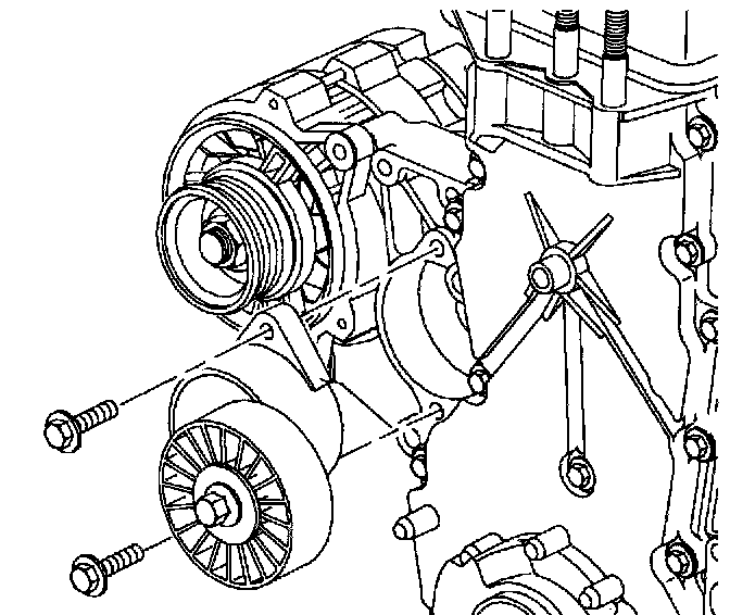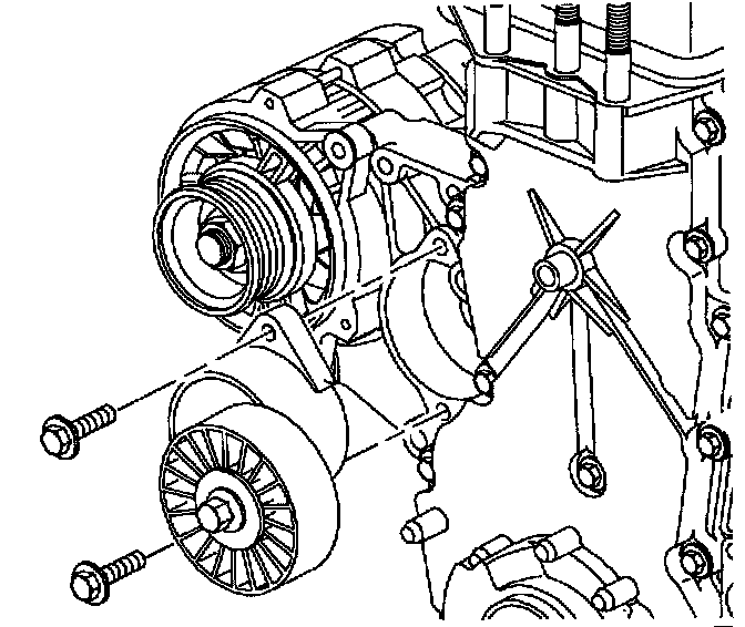 IMPORTANT: The engine may have to be moved slightly toward the left-hand fender for tensioner removal. A pry bar can be placed between the steel engine motor mount and frame rail to move the engine. Do not pry against aluminum engine components or accessories.