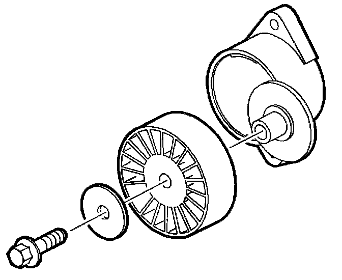 2. Remove tensioner or idler pulley fastener and remove pulley.