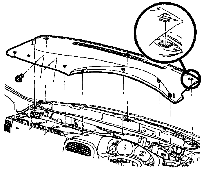 b. Align tabs on sides of upper trim panel with openings in windshield garnish molding.
