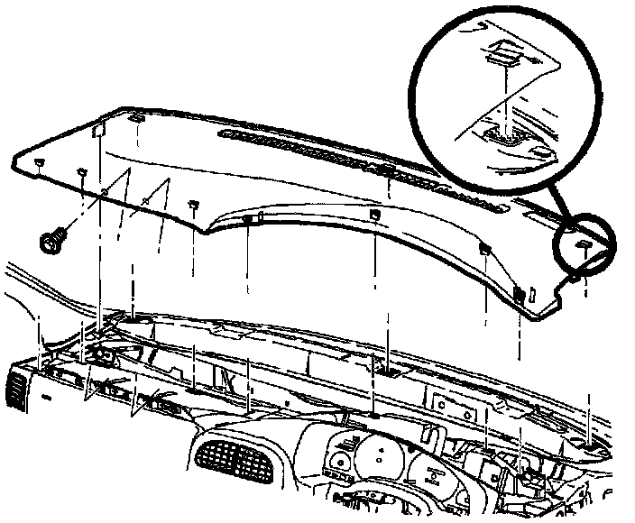 a. Remove screws located under upper trim panel on passenger's side of vehicle.