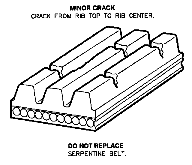 Minor cracks in the belt rib are normal. They are the result of reverse bending around a backside pulley. Do not replace belts for minor cracks.