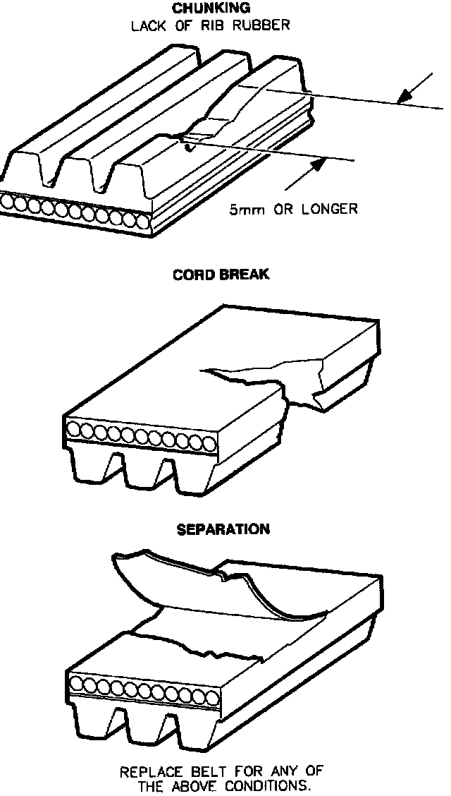 Belts should also be replaced if cord breakage or fabric separation is observed.