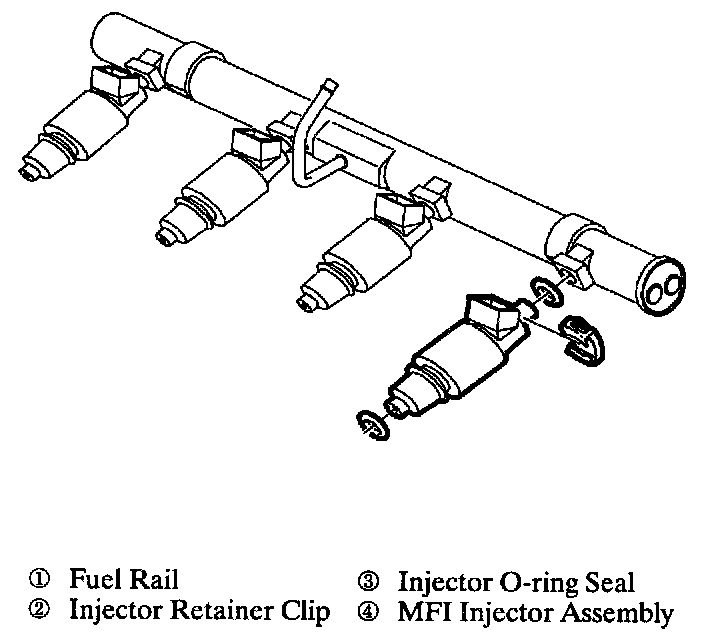 The fuel rail assembly is mounted to the intake manifold, and performs several functions. It positions the fuel injectors in the intake manifold, distributes fuel evenly to the fuel injectors, and dampens fuel pump pressure pulsations. The dampening function is performed by a helium filled, metal bladder inside the fuel rail.