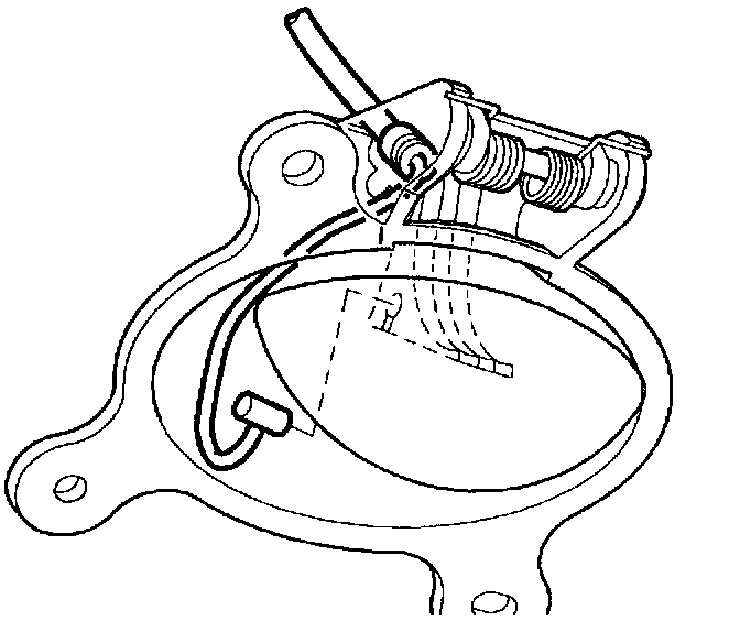 2. Remove hood release cable from lever by releasing cable housing, then rotating cable downward to cutout.