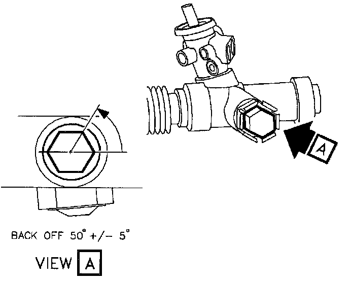 4. Back-off adjuster plug 50 degrees, plus or minus 5 degrees (slightly less than one flat of nut).