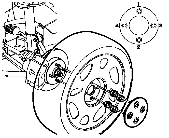 7. Install wheel nuts and tighten in a crisscross pattern. Repeat tightening pattern to make sure torque is correct.