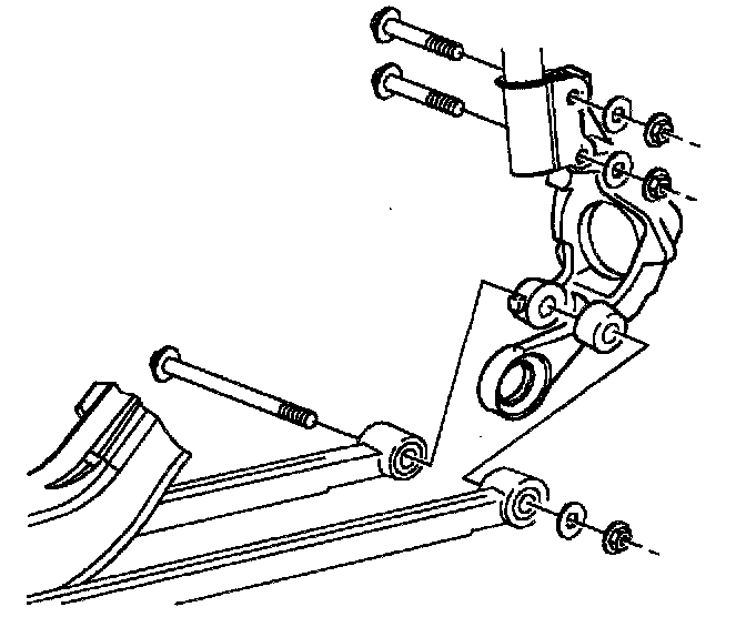 3. Place trailing arm into knuckle and install fastener nut. Do not torque fastener at this time.
