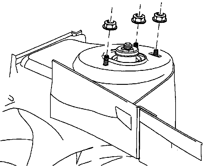 4. Remove and discard the three strut assembly-to-body attachment nuts.