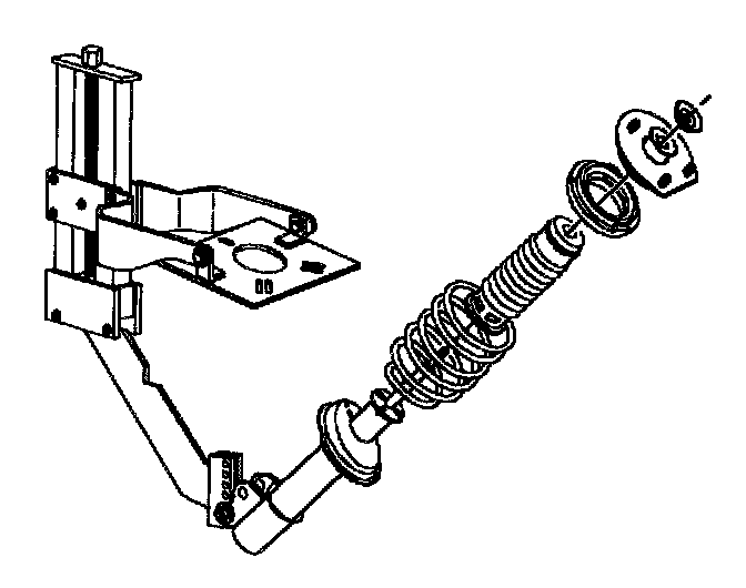 CAUTION: STRUT SPRING IS UNDER A HIGH COMPRESSIVE LOAD. DO NOT REMOVE THE STRUT SHAFT TO UPPER SUPPORT NUT WITHOUT FIRST UNLOADING THE UPPER AND LOWER SPRING SUPPORTS OF SPRING PRESSURE, USING THE PROPER SPRING COMPRESSING TOOL.