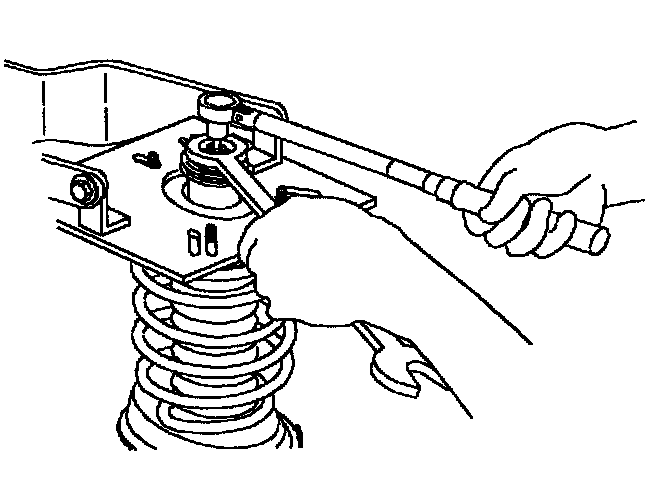 1. Attach strut to the vehicle body with the three strut mount-to-body attachment nuts.