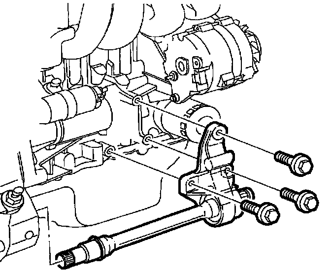 6. Secure all three intermediate axle shaft support bracket-to-engine block fasteners.