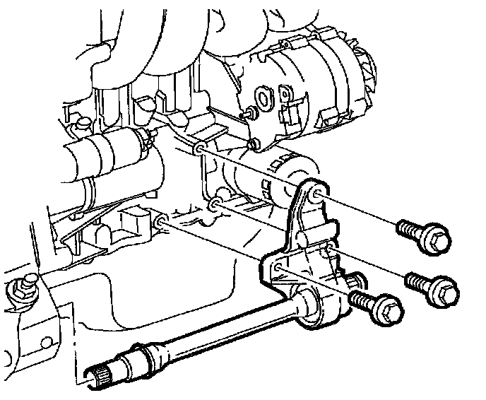 4. Remove intermediate axle drive shaft support bracket-to-engine block fasteners.