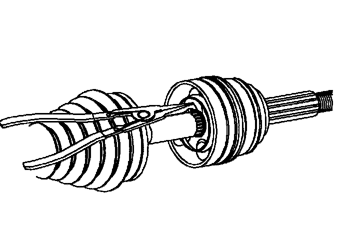 b. Separate joint boot from CV joint race at large diameter and slide boot away from joint along axle shaft.