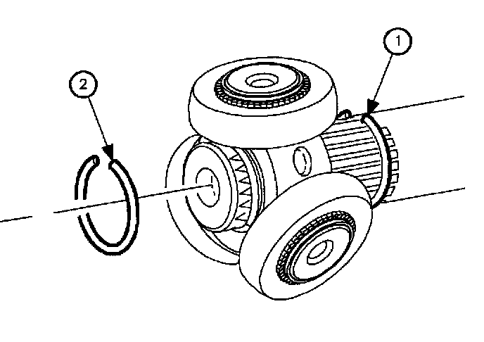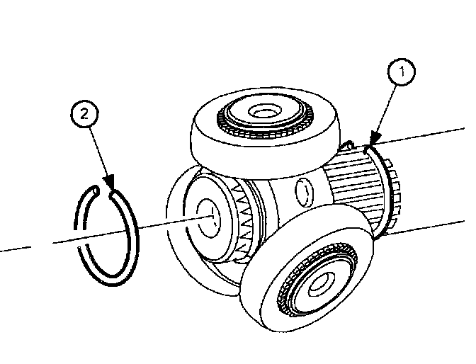 g. Remove (2) spider retaining ring from groove on axle shaft and slide spider assembly off of shaft.