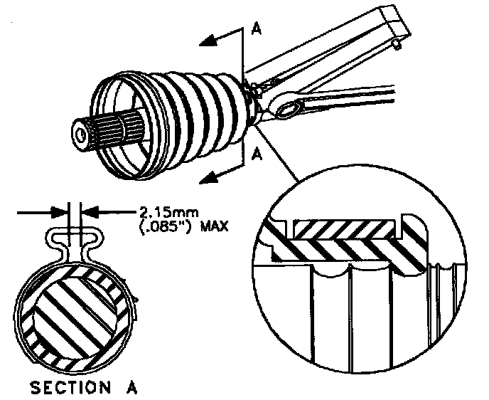j. Measure clamp end gap dimension and repeat step if necessary. Dimension should not exceed 2.6 mm (.102 inch)