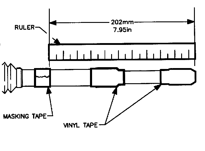 b. Measure 202 mm (7.95 inch) from the outboard end of the drive shaft for location of where damper will be installed. Mark this location with a piece of masking tape.