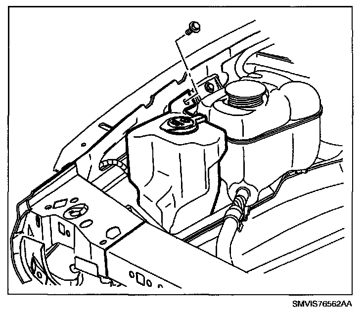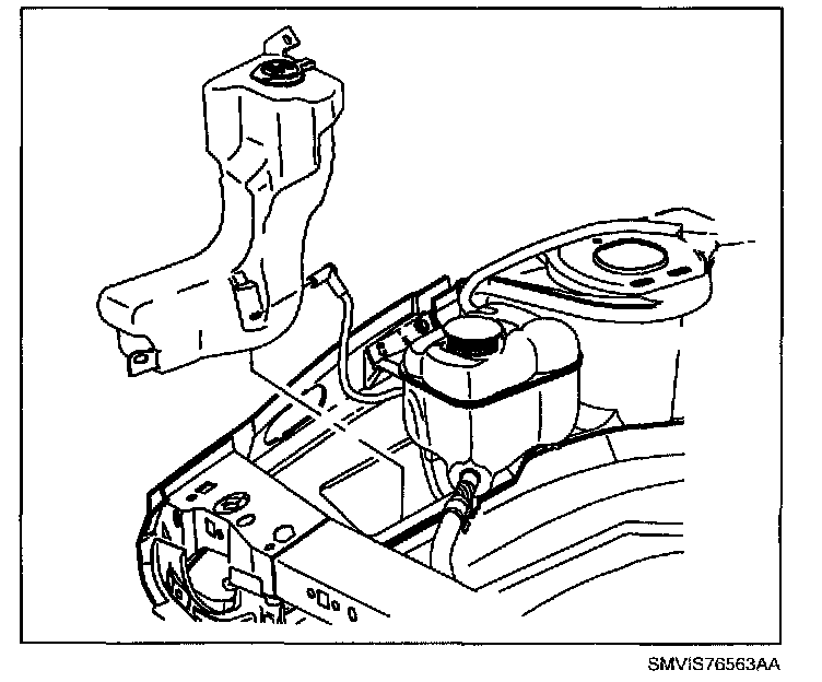 NOTE: Use caution when removing hoses from washer system components to avoid spilling washer fluid on painted surfaces.