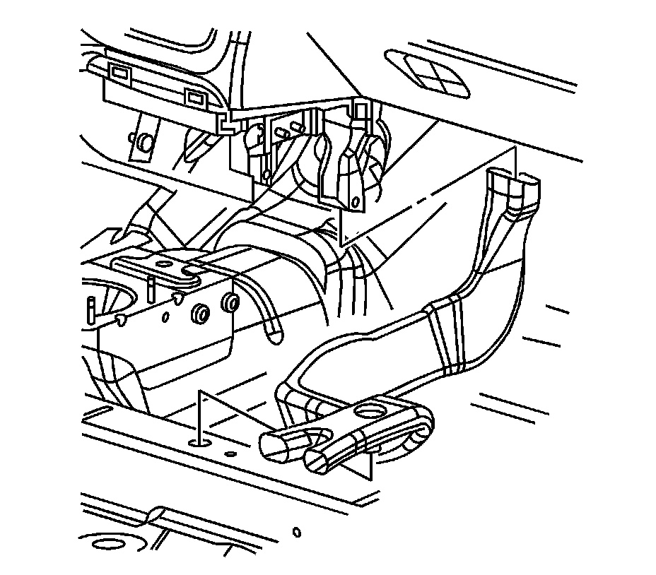 4. Unsnap the floor duct from the floor support beam. Disengage the floor duct from the center floor outlet duct and remove from the vehicle.