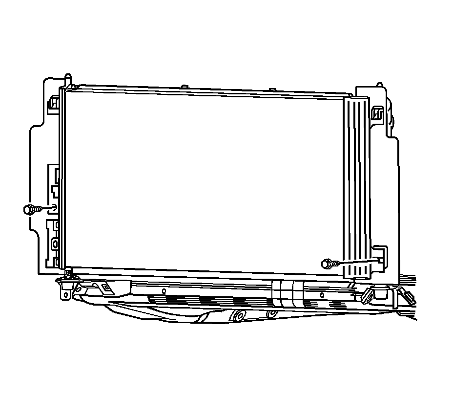 6. Slide the condenser down to disengage the upper mounting tabs from the radiator.