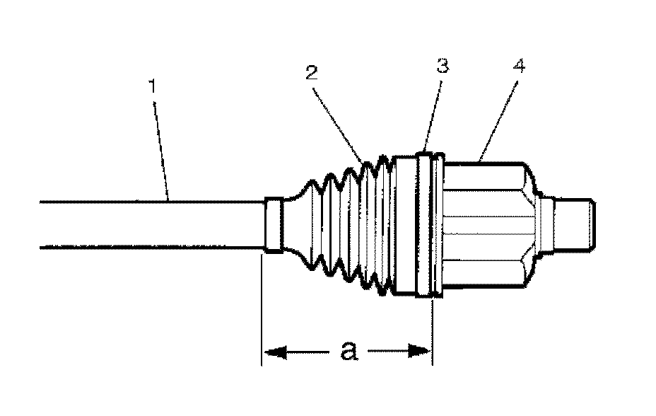 11. Slide the large diameter of the inboard boot (2), with the larger clamp in place (3), over the outside of the trilobal tripot bushing and locate the lip of the boot in the groove (4).