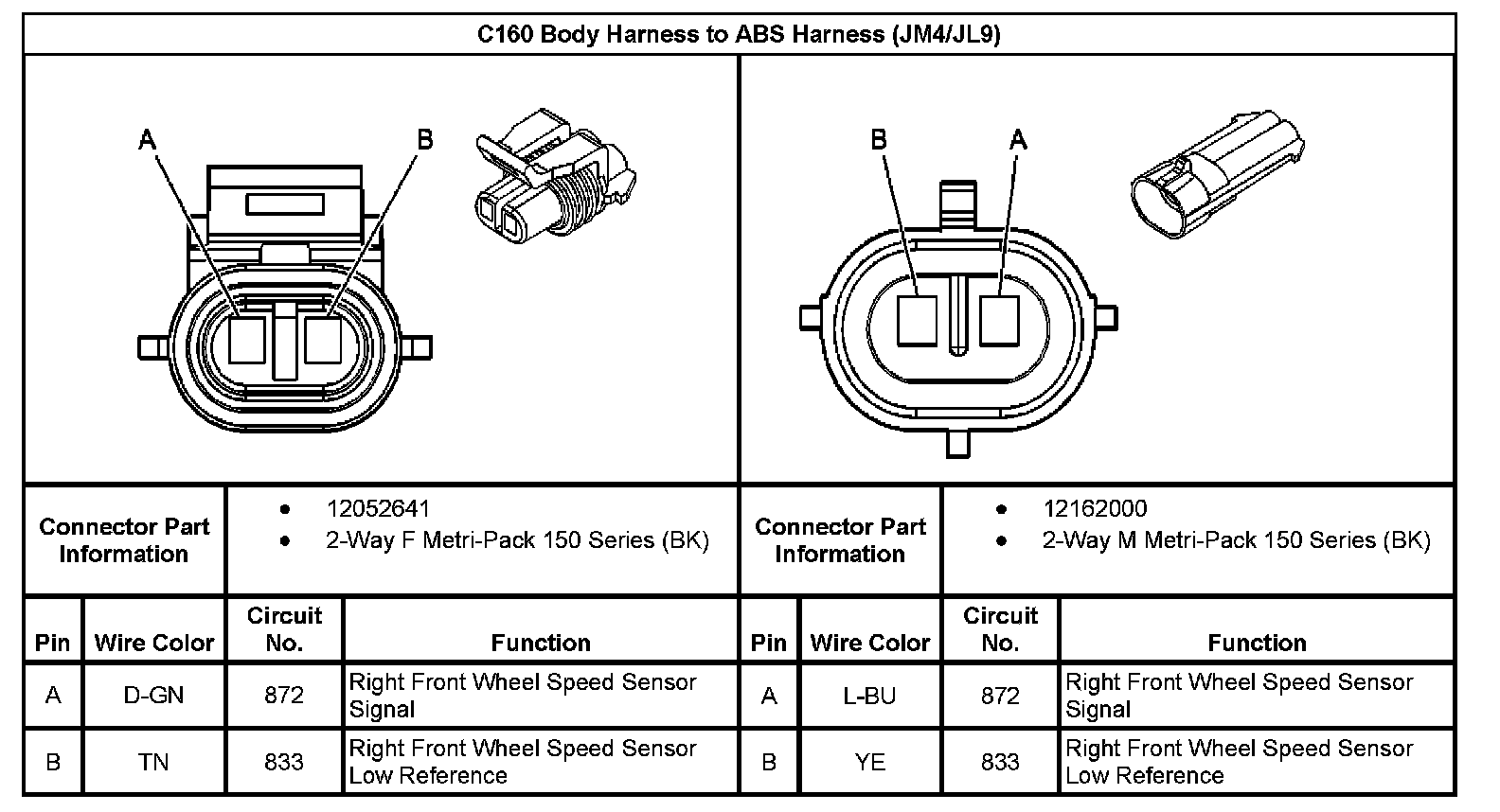 C160 Body Harness To ABS Harness (With RPO Code JM4/JL9):
