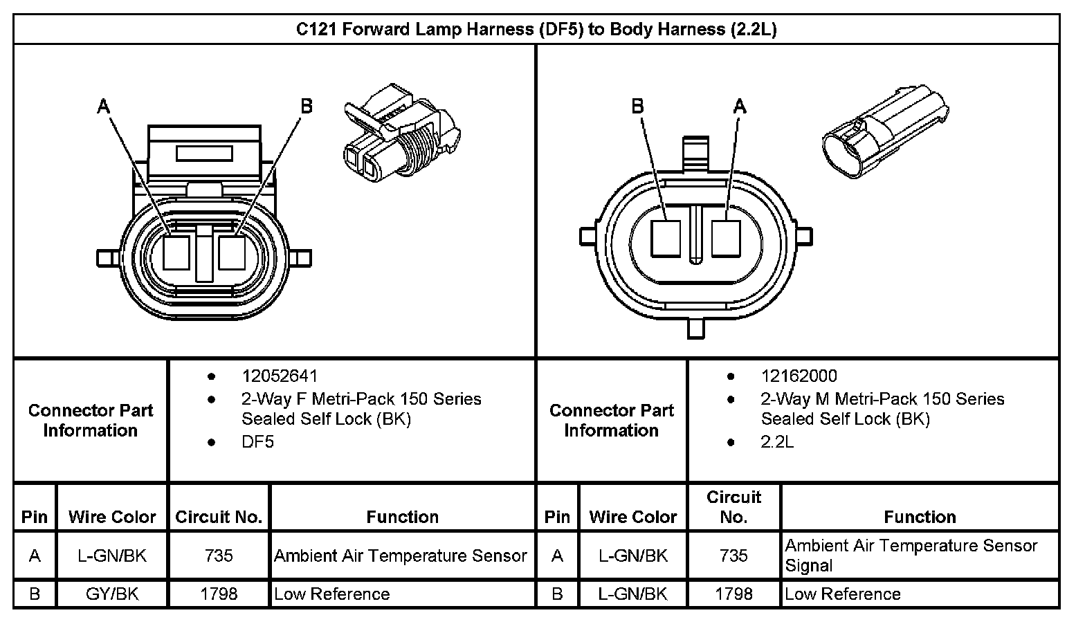 C121 Forward Lamp Harness (With RPO Code DF5) To Body Harness:
