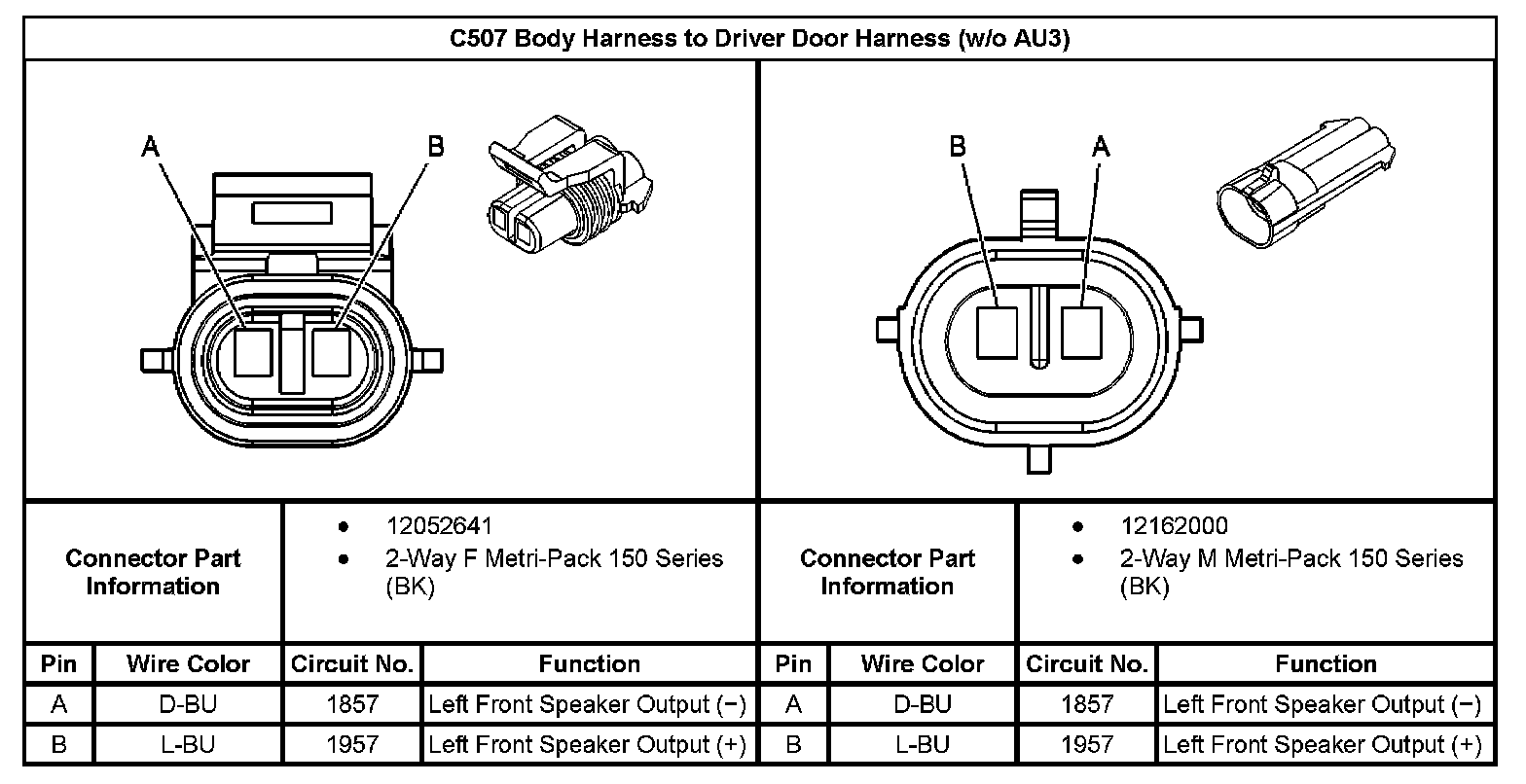 C507 Body Harness To Driver Door Harness (Without RPO Code AU3):