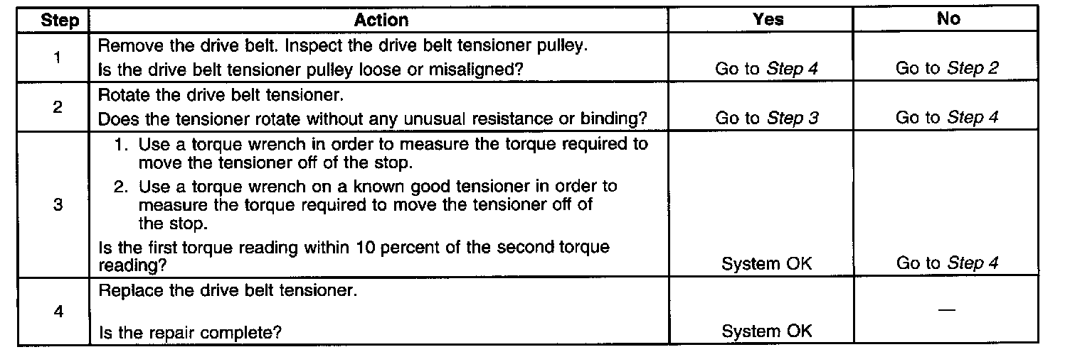 Drive Belt Tensioner Diagnosis (Steps 1-4):