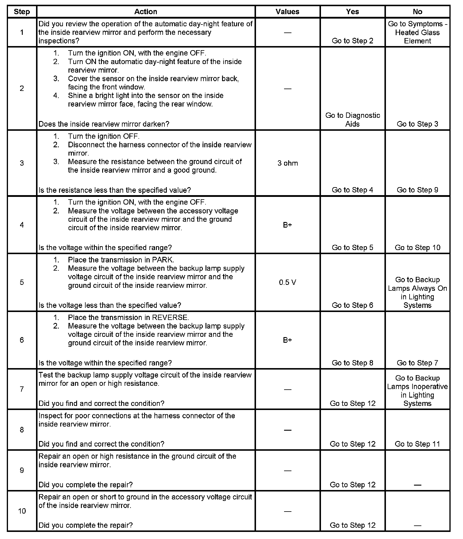 The automatic day-night feature of the inside rearview mirror may not operate properly or become inoperative due to an intermittent short to battery positive voltage in the backup lighting system.