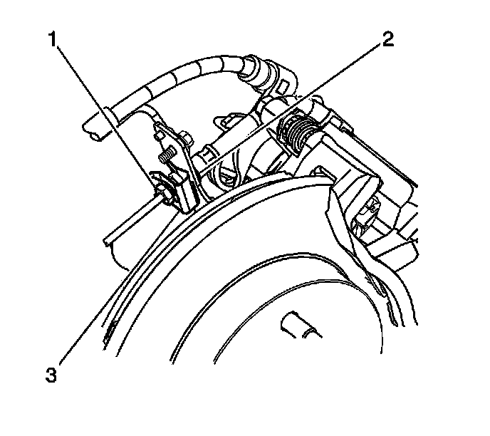 5. Remove the brake hose retaining clip (3) from the hose mounting bracket.