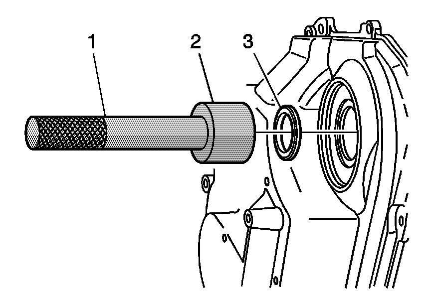 1. Install a new output axle seal (3). Use J 41102-1A (2) with J 8092 (1). Lubricate the seal lip with transmission fluid.