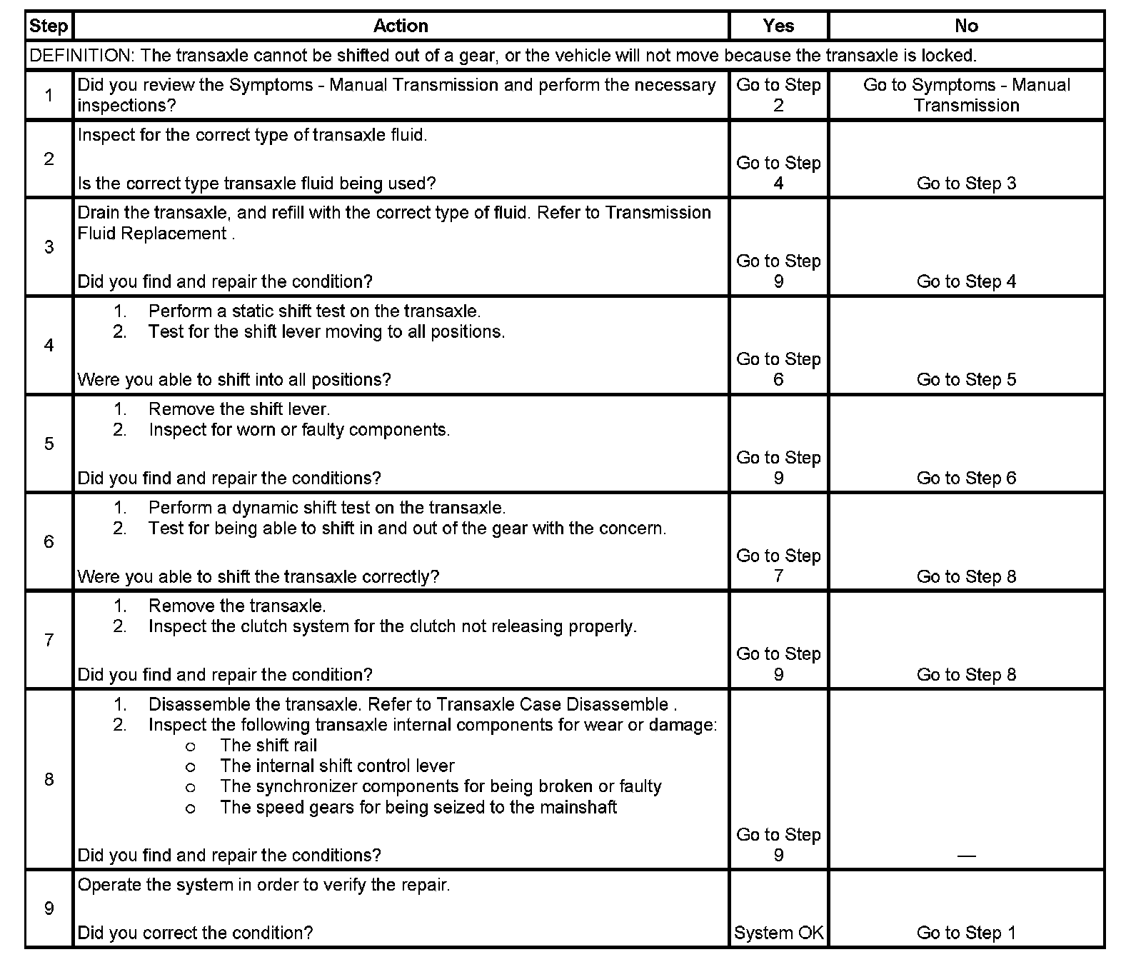 4. A static shift test is performed by shifting into all gears with the engine not operating. By confirming that the transaxle can be shifted into all positions, ensures that the shift lever is not excessively worn or damaged.