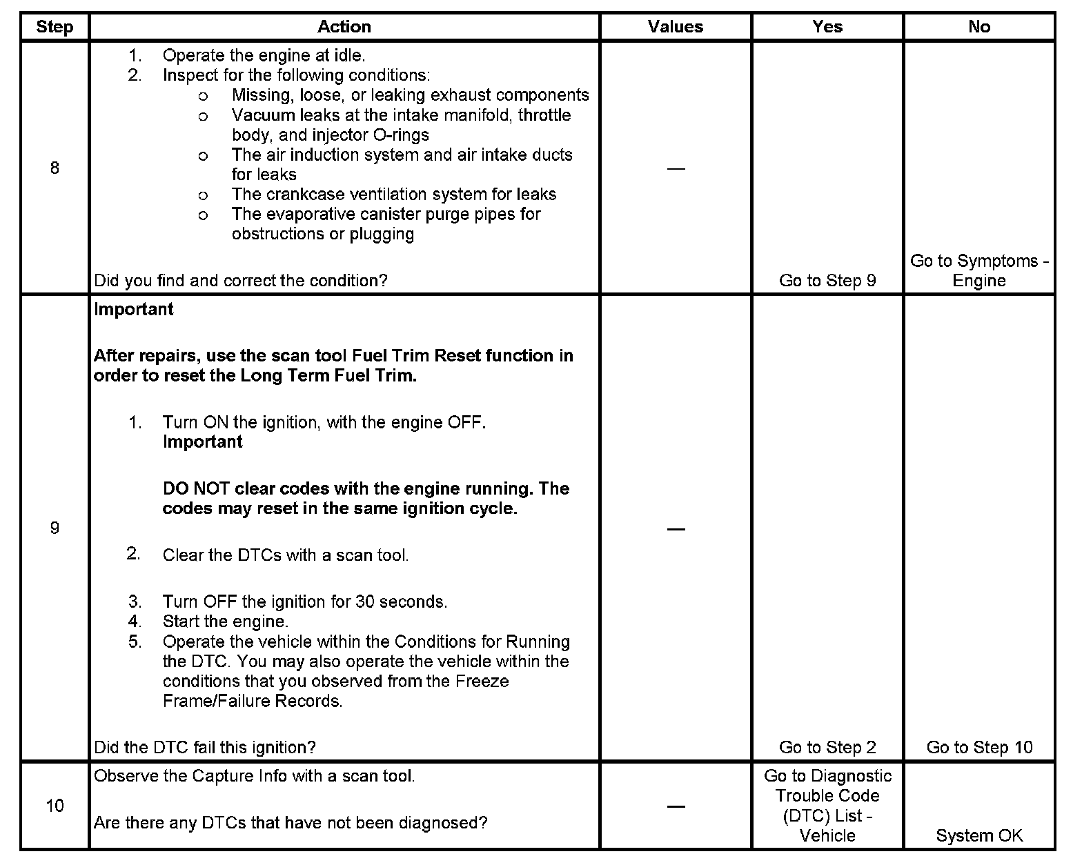 - A current DTC, Last Test Failed, clears when the diagnostic runs and passes.