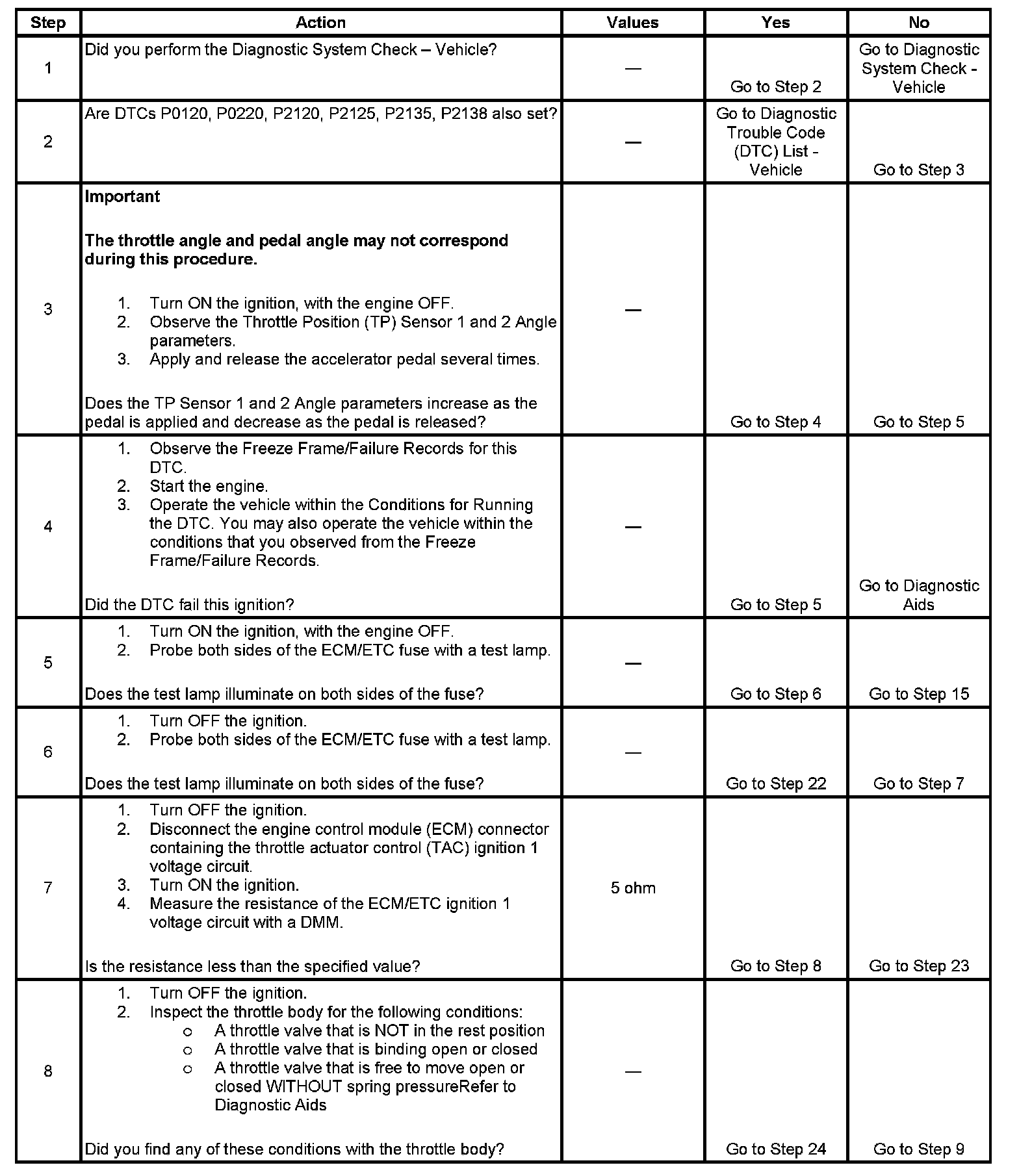 IMPORTANT: Operating the throttle blade with the Throttle Blade Control function of the scan tool may cause additional DTCs to set. Do not attempt to diagnose DTCs set during this function.