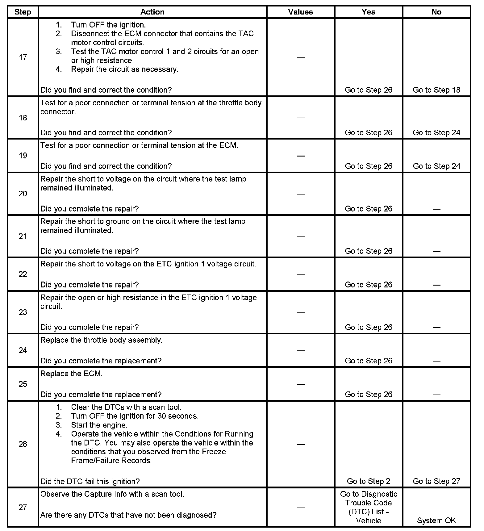 - Replace the throttle body if any of these conditions are found.
