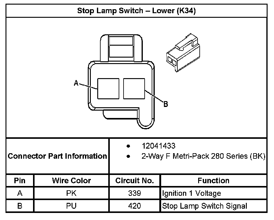 Stop Lamp Switch - Lower (With RPO Code K34):