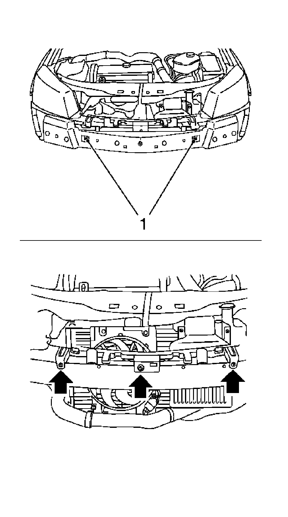 1.Remove the front bumper fascia. Refer to Front Bumper Fascia Replacement Front Bumper Fascia Replacement .
