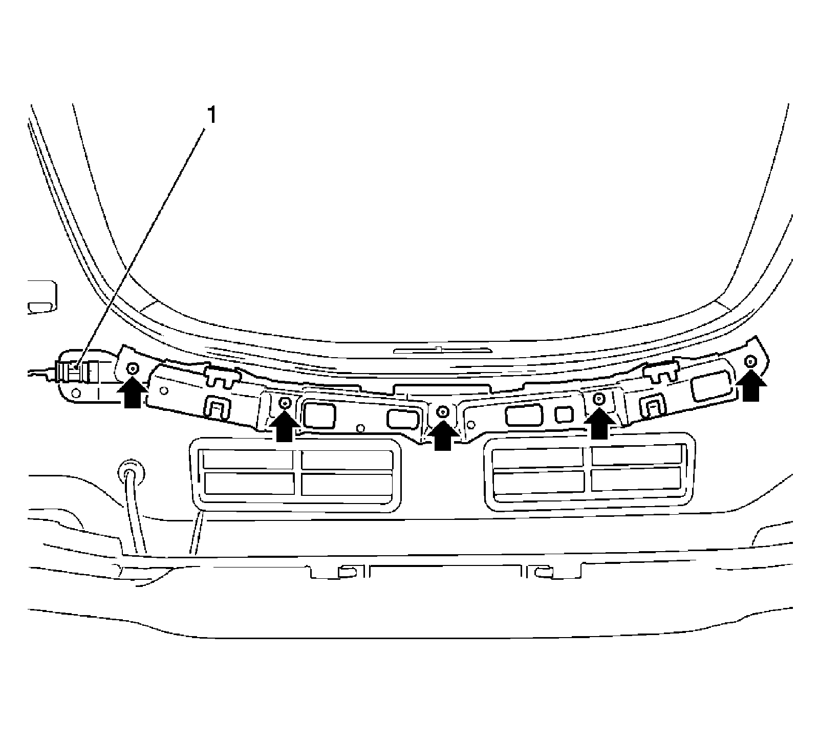 1.Remove the rear bumper fascia. Refer to Rear Bumper Fascia Replacement Rear Bumper Fascia Replacement .