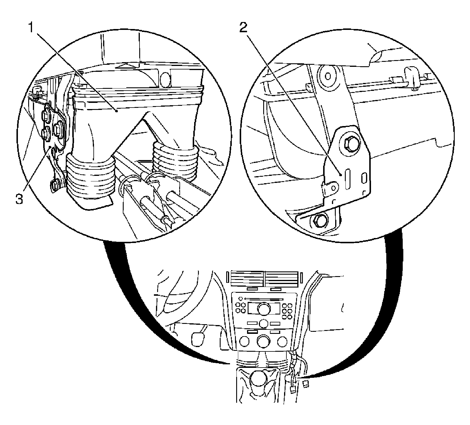 * Remove the left brace (3) when replacing the left air duct for footwell.