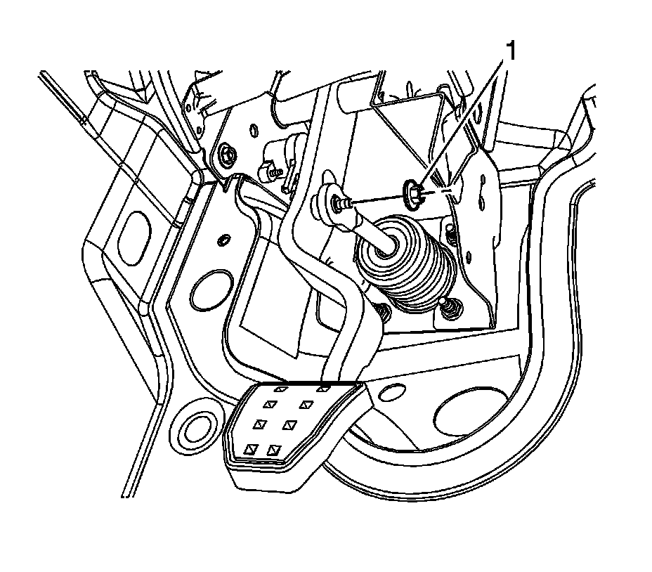 5. Connect the vacuum brake booster pushrod (1) to the brake pedal pushrod pin.