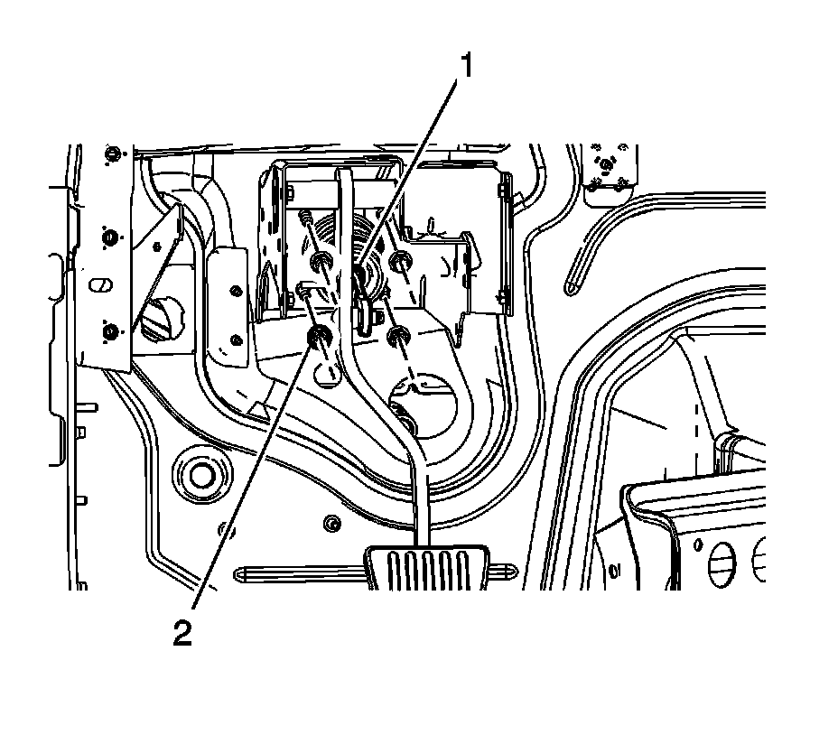 2. Inspect the vacuum brake booster to dash panel gasket (2) for damage and replace, if necessary.