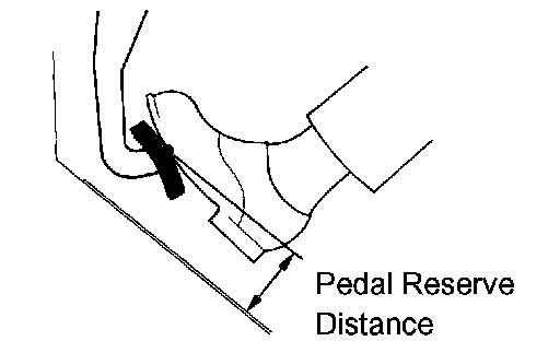 b. With engine running, depress the pedal and measure the pedal reserve distance, as shown in the illustration.