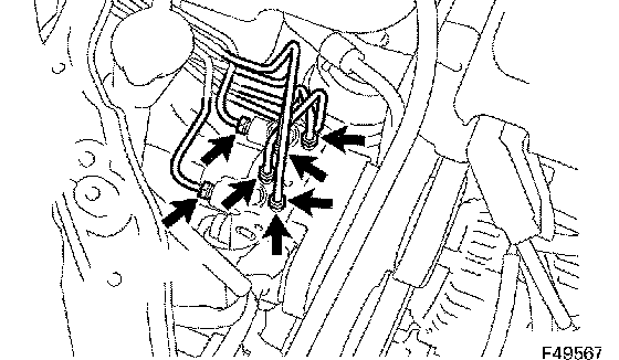 NOTICE: Be careful not to damage the brake tubes and wire harness.