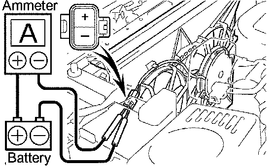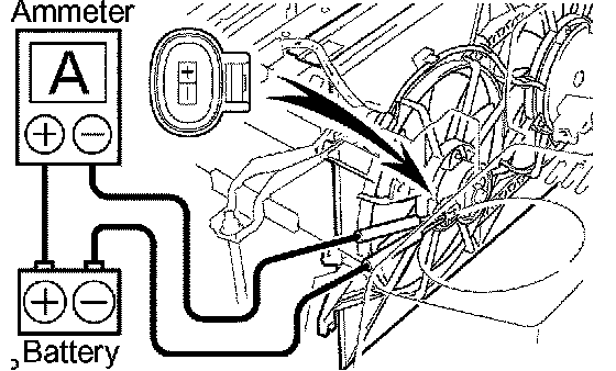 b. Connect the battery and ammeter to the No. 2 fan connector.
