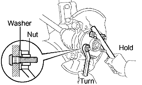a. Install a washer and nut to a new LH hub bolt as shown in the illustration.