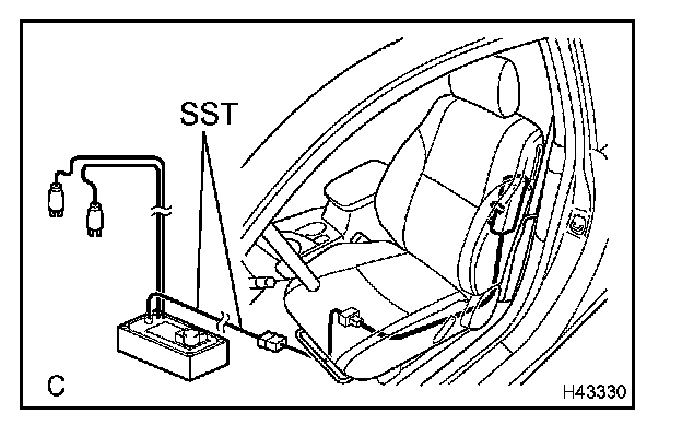 1. Connect the SST connector to the front seat airbag assembly LH connector.