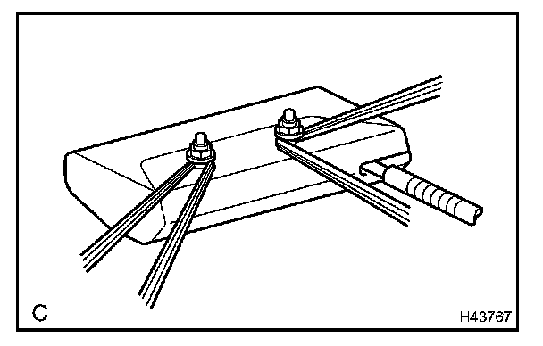 2. Wind the wire harness around the stud bolts of the front seat airbag assembly LH as shown in the illustration.