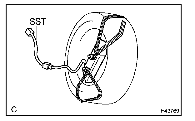 NOTE: To avoid damaging the SST connector and wire harness, do not lock the secondary lock of the twin lock. Also, secure some slack for the SST wire harness inside the tire.