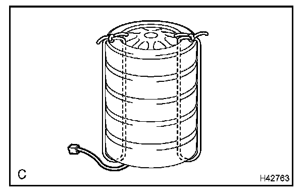 CAUTION: Make sure that the wire harness is tight. Looseness in the wire harness results in the tires coming free due to the shock when the airbag is deployed.